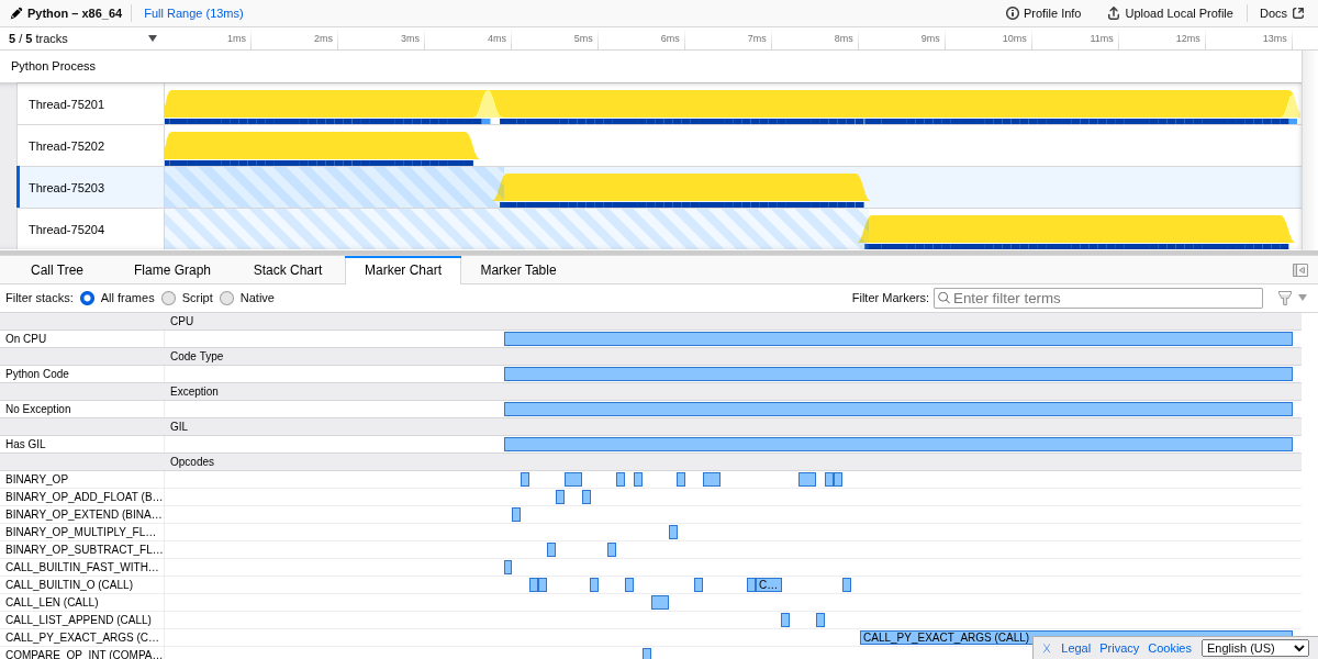Enable opcode-level profiling to see which bytecode instructions are executing: